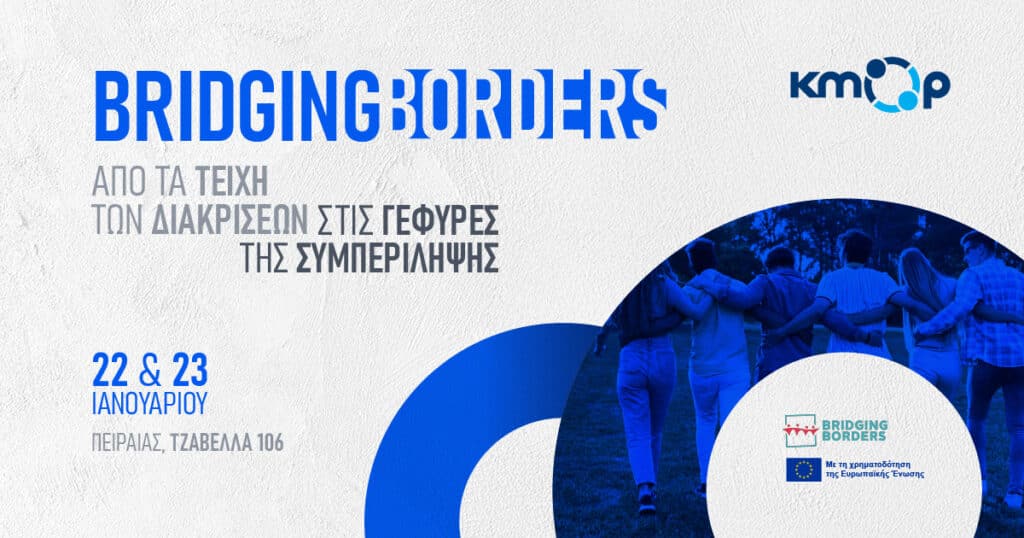 Το ΚΜΟΠ σε προσκαλεί σε ένα διήμερο διαλόγου, εμπειριών και συνύπαρξης με τίτλο: «Bridging Borders: Από τα τείχη των διακρίσεων στις γέφυρες της συμπερίληψης», που θα πραγματοποιηθεί την Πέμπτη 22 και την Παρασκευή 23 Ιανουαρίου 2026 στον Πειραιά (Τζαβέλλα 106).
