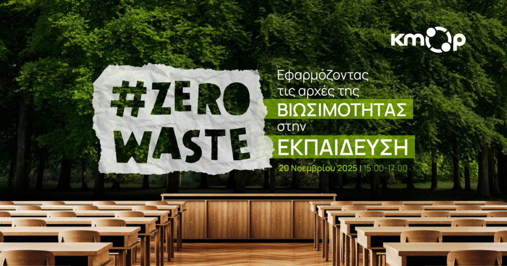 Το ΚΜΟΠ σας προσκαλεί να συμμετάσχετε στο διαδικτυακό εργαστήριο που διοργανώνει την Πέμπτη, 20 Νοεμβρίου 2025, και ώρα 15:00-17:00, με τίτλο “#ZeroWaste: Εφαρμόζοντας τις αρχές της βιωσιμότητας στην εκπαίδευση”.